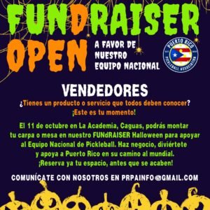 La Puerto Rico Pickleball Association te invita al Fundaiser Open del Equipo Nacional de Puerto Rico que estará representando a la isla en el World Cup 2025 en The Fort, Florida del 27 de octubre al 2 de noviembre. Esta es tu oportunidad de apoyar y ayudar a nuestros equipos juniors, adultos y seniors para poner la bandera en alto. Durante el evento se jugará de maneras inesperadas con elementos distintos, como paletas gigantes, de madera, entre otros. Habrá concurso de disfraces y una subasta con el Equipo Nacional.